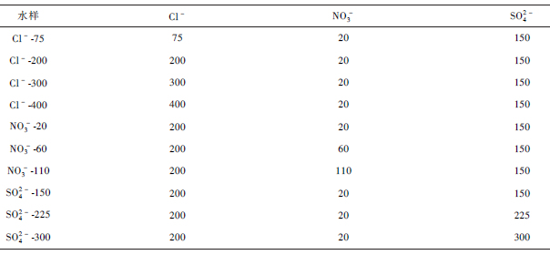 表3 模拟水样的无机离子含量