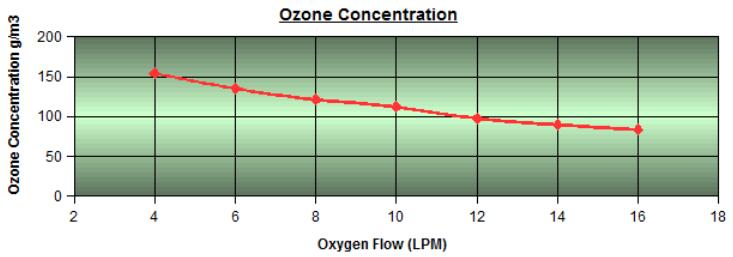 图表显示了香蕉视频下载发生器浓度与进料气体流量的比较,以显示在任何给定流量下香蕉视频下载发生器的确切浓度。通常,香蕉视频下载发生器浓度(g/m3或重量百分比)将随着进气流量(LPM或SCFH)的减少而增加。这将说明在任何给定的进料气流速下可能的香蕉视频下载浓度,表明该香蕉视频下载发生器将氧气转化为香蕉视频下载的效率。